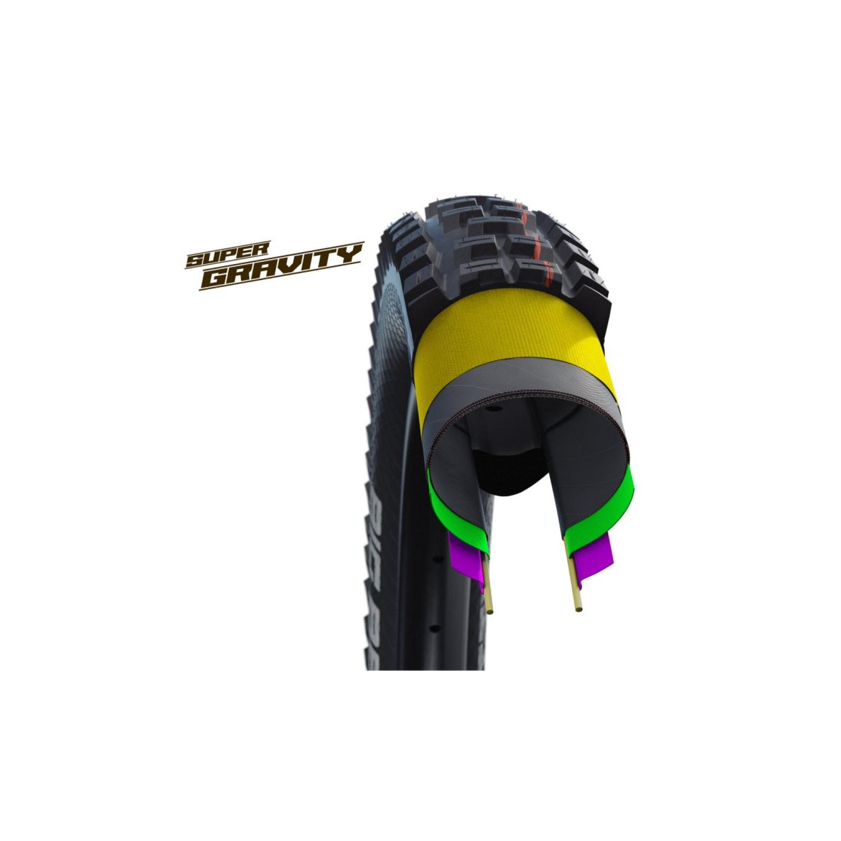 Super Gravity je patentirana konstrukcija karkasa. Četveroslojna bočna stijenka stabilizira gumu, dok je dvoslojni gazni sloj hvatan i fleksibilan. SnakeSkin također štiti od bočnih posjekotina.